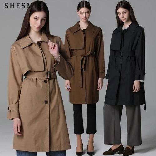 [쉬즈미스(SHESMISS)] 미니멀 히든버튼 벨티드 트렌치코트 (택가격: 428000원)