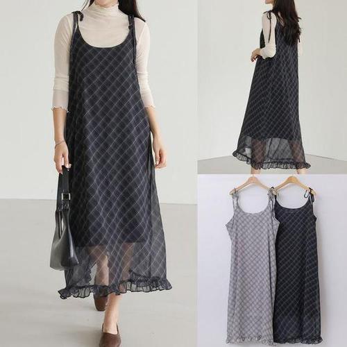 [셀러허브_여성트랜드패션]위쉬몰 LY 체크쉬폰밑프릴끈원피스(V286H509) 빅사이즈