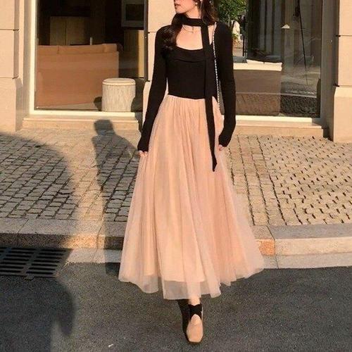 [SBD] 데일리룩 원피스 롱 여성 봄 니트 쉬폰