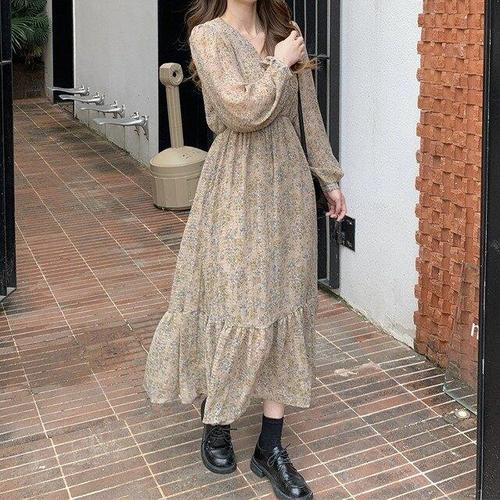 여성스러운 플라워 쉬폰 롱원피스 가을 데일리 하객룩 데이트룩