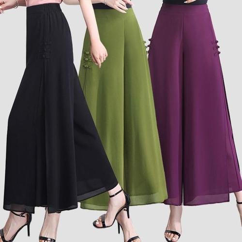 빅사이즈 중년여성 쉬폰 치마바지 캐주얼 루즈핏 밴딩 와이드 팬츠 40대50대