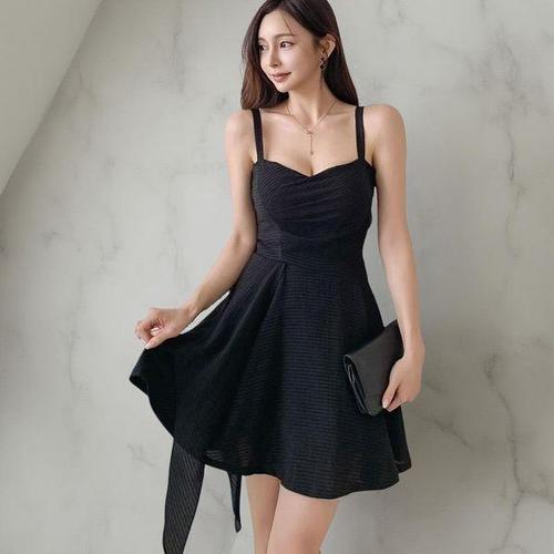 [다잇템]여성 코디 시폰 잔주름 슬림핏 미니드레스