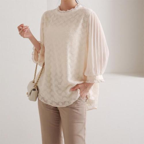 [옷자락]여성 시스루 쉬폰 블라우스 반바지 세트