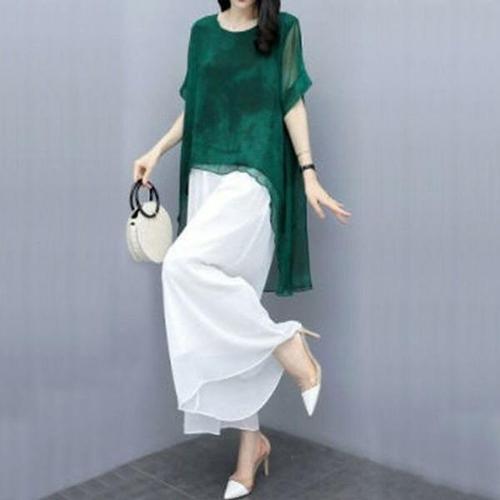 [엄지척]여성 여름 쉬폰 반팔 블라우스 와이드 바지 상하 세트_19557304_667501