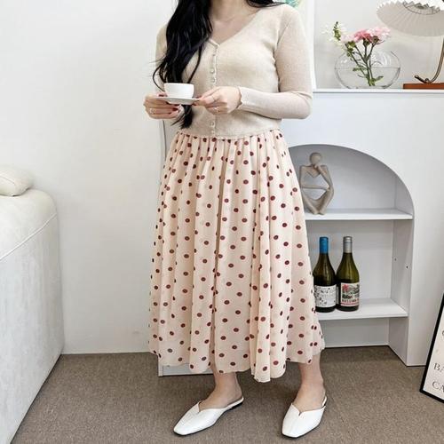 [오노마] ONM 80912 KYI 여성밴딩쉬폰도트땡땡이롱스커트