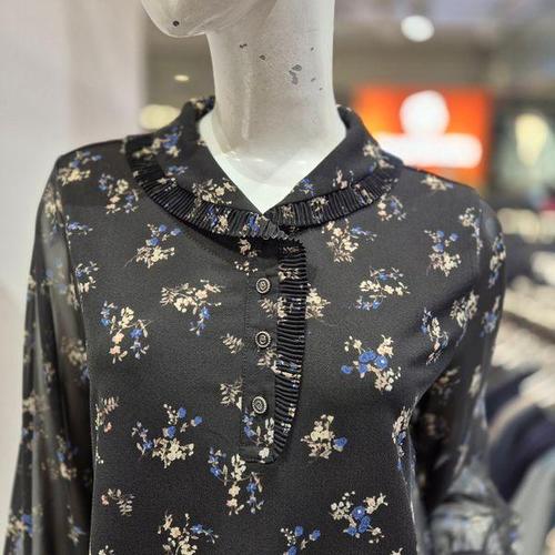 |KSH3B99|시스루 꽃무늬 주름원단 시보리 쉬폰블라우스 여성맨투맨