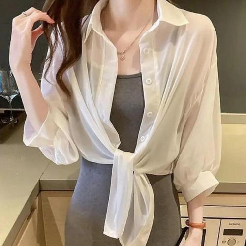 [모노무드]모노무드 봄여름 가을 여성 시스루 쉬폰 가디건 셔츠 블라우스