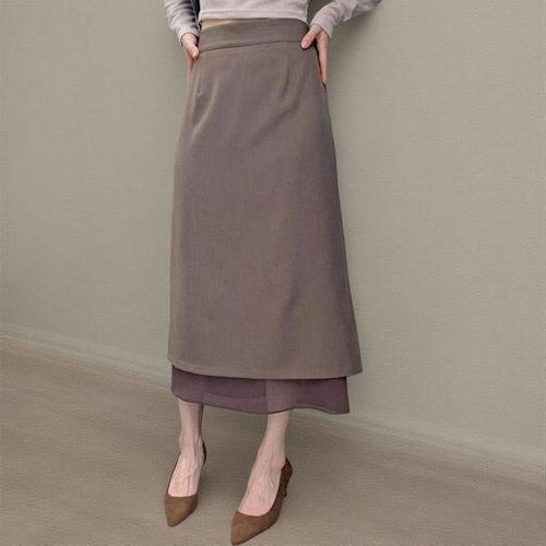 [옷자락]여성용 일상용 쉬폰 레이어드 A라인 롱스커트