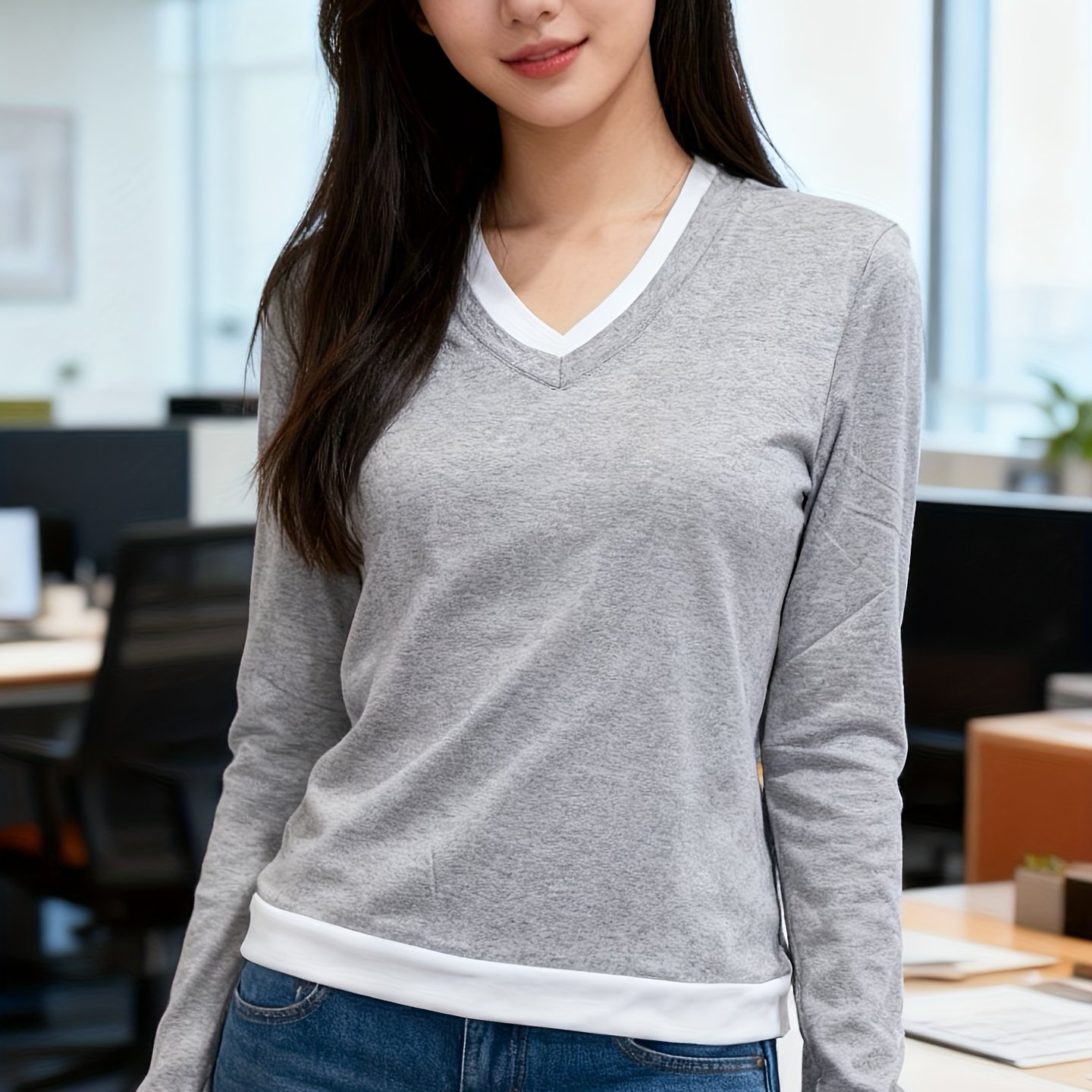 TEMU 투피스 스플라이스 티셔츠 / 여성용 긴팔 상의 / 유니크한 디자인 / 핏되는 니트 / 베이스 레이어 셔츠 / 사계절 필수 상의 / 출퇴근, 모임, 캐주얼한 날에 적합 / 매칭 용이