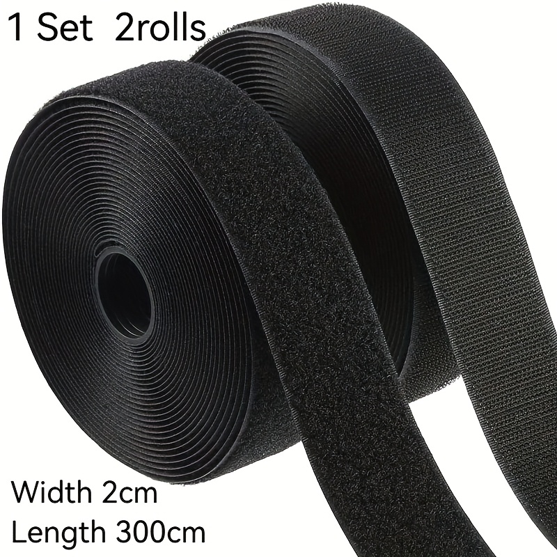 TEMU 2롤 1세트 - 재봉 스트립 | 옷, 신발, 가방용 간편 재봉 후크 앤 루프 테이프 - 블랙/화이트 인터로킹 테이프, 길이 300/500cm, 폴리에스터 섬유