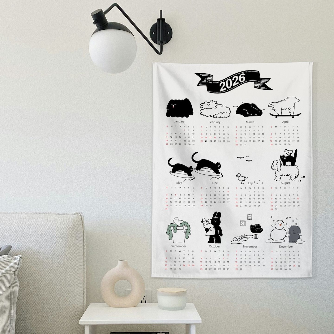 2026년 캘린더 달력 패브릭 포스터 가리개 커튼 인테리어_블랙고양이