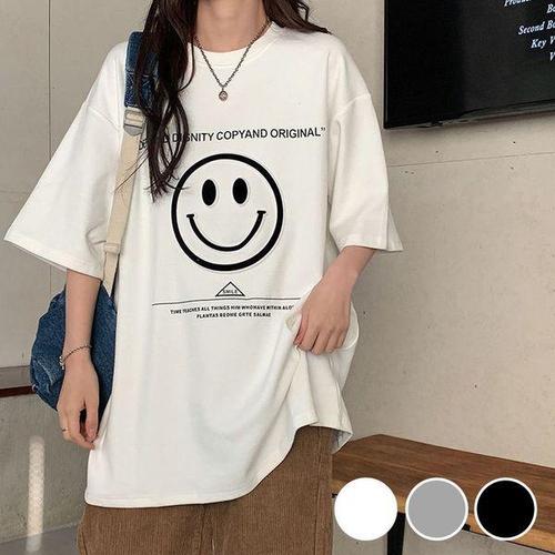 [라일리여성의류] Rly S393701 스마일 레터 반팔 루즈핏 박스 원