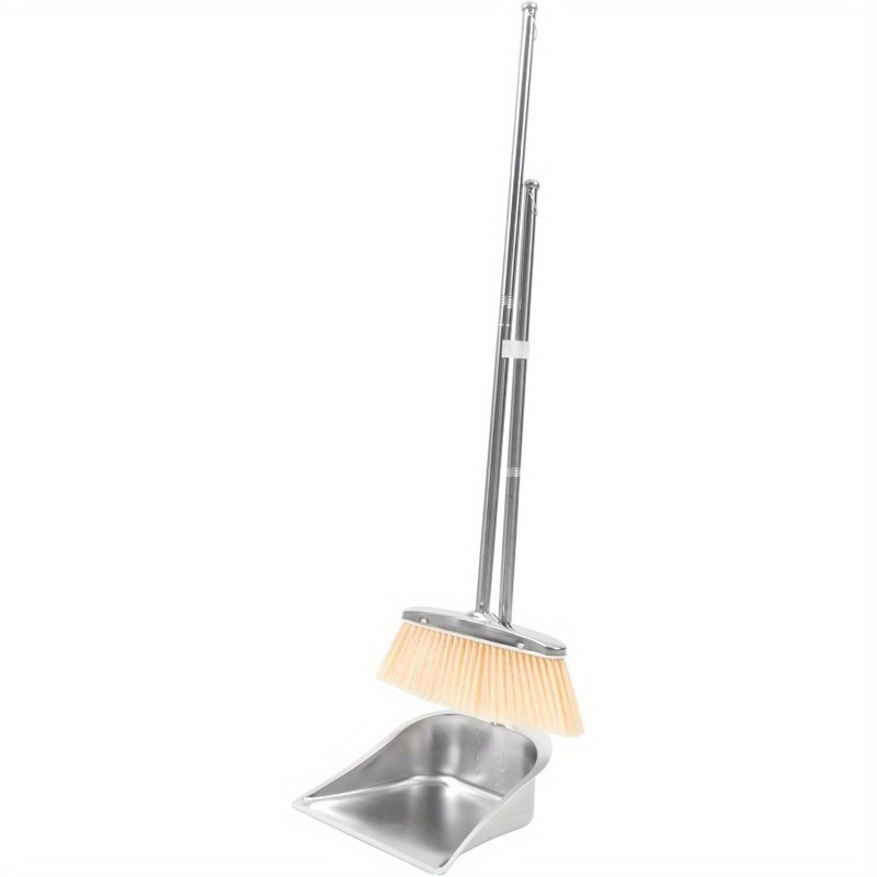 TEMU 1세트 스테인리스 스틸 빗자루와 쓰레받기 세트 - 후크 디자인, 와이드 앵글 바닥 청소용 빗자루 포함, 실내/외부 겸용, 타일·목재·대리석 등 다양한 바닥재에 적합, 사무실 및 가정 청소용