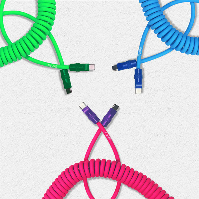 SOOPII 컬러 소프트 실리콘 2배 스프링 케이블 240W C to C타입 초고속 충전 S87