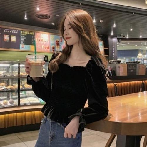 [엄지척]벨벳 블라우스 스모크밴딩 스퀘어넥 어깨밴딩_19660406_667501