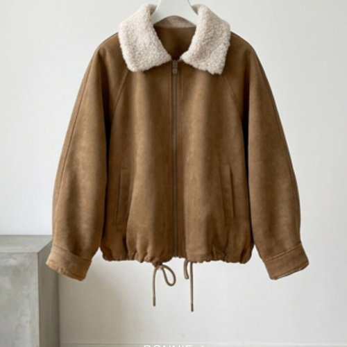 보니제이 / 포근 양털카라 스웨이드 누빔 블루종 점퍼 스트링 루