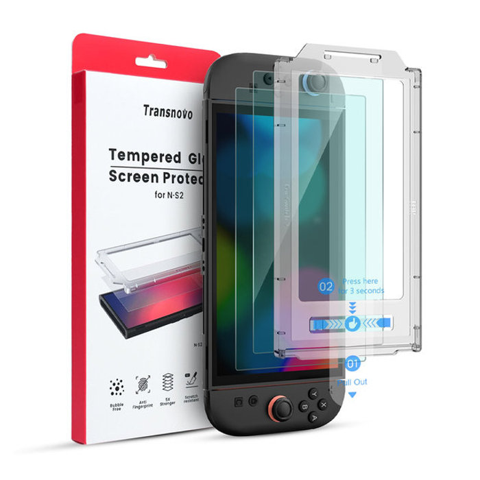WSKEN 닌텐도 스위치2 고화질 강화유리 액정보호필름 블루 라이트 차단 9H 지문방지+ 친환경 이지툴, 2개, 아이보리, 닌텐도 스위치2