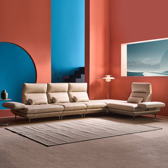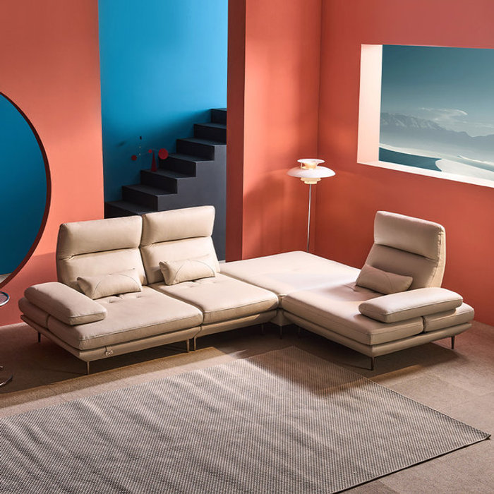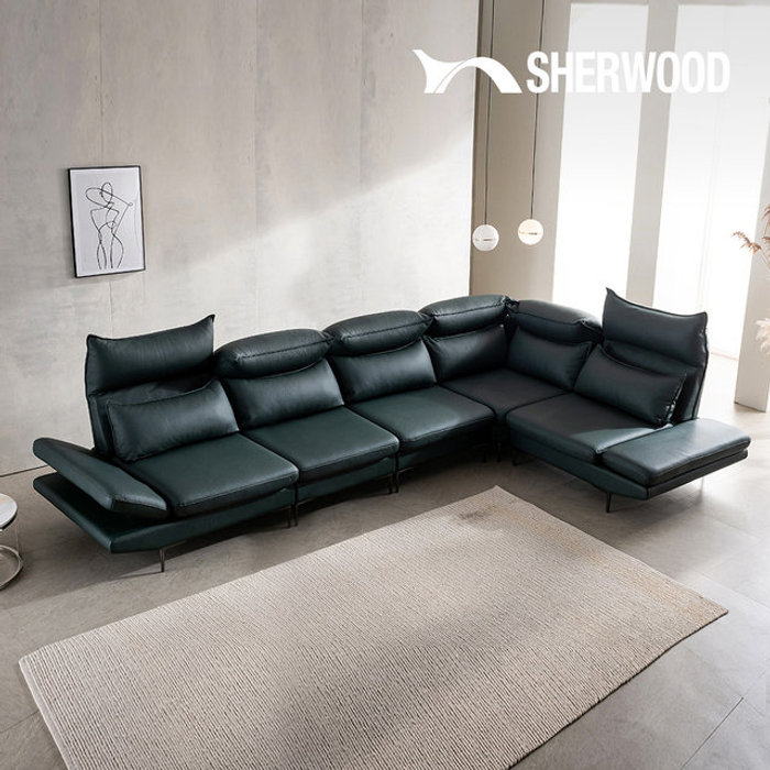 쉐우드가구 아소르 6인용 코너형 이태리 천연통가죽 기능성 스윙 소파