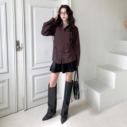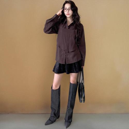 [옷자락]여성 나일론 스카프 레이어드 루즈핏 셔츠