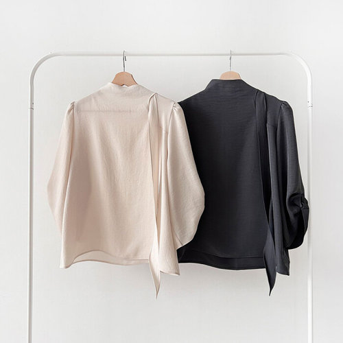 [옷자락] 여성 가을 하객용 리본 스카프 포인트 박시 블라우스
