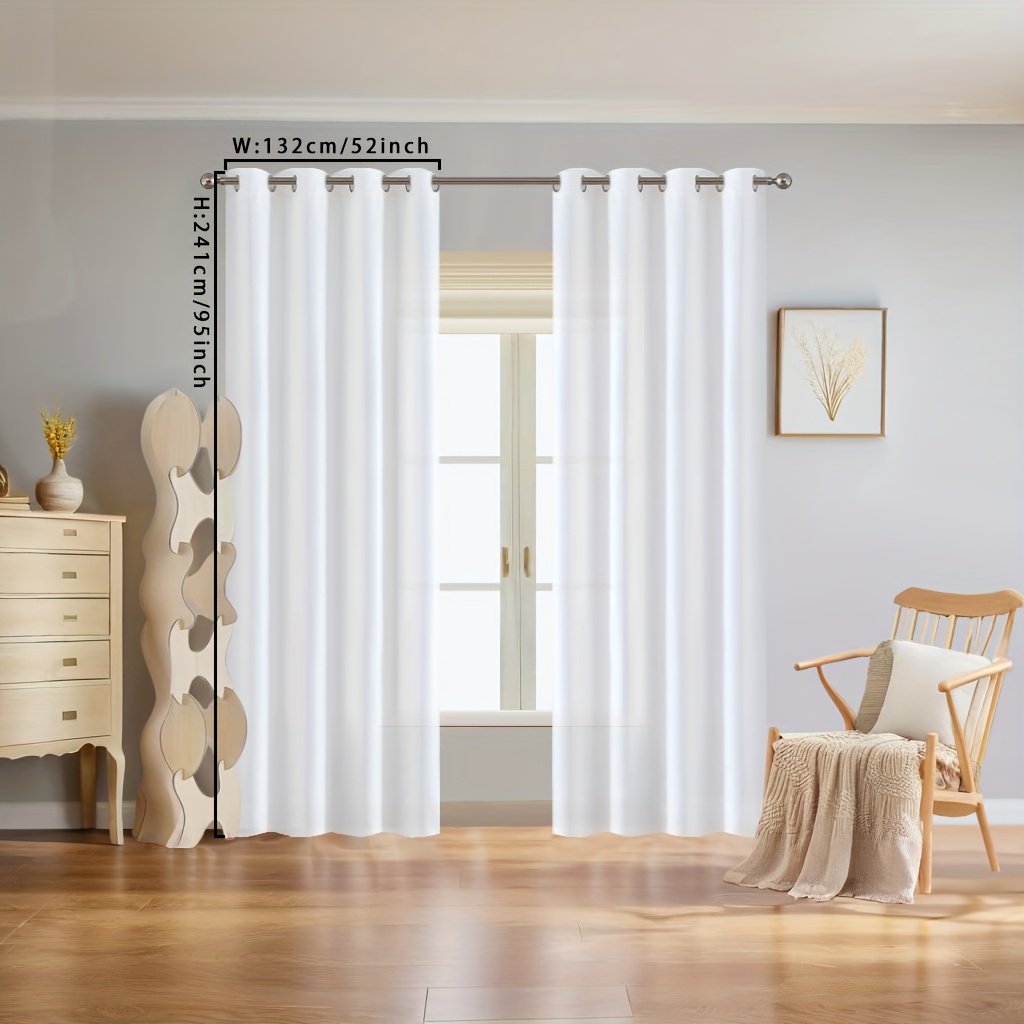 TEMU 2개 세트 화이트 필터링 커튼 - 메탈 링 포함, 반투명 프라이버시 패널, 거실/침실/사무실용 창문 커튼 - 쉬운 설치 모던 홈 데코, 스타일, 시스루 원단, 홈 장식