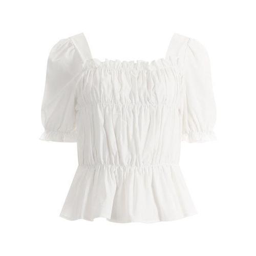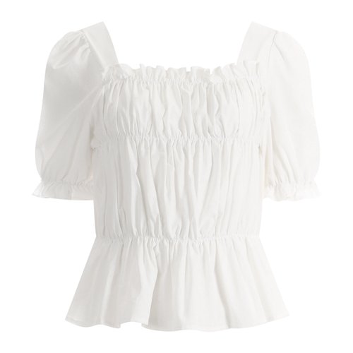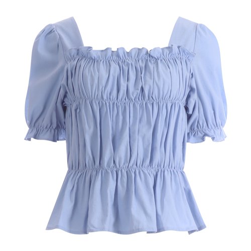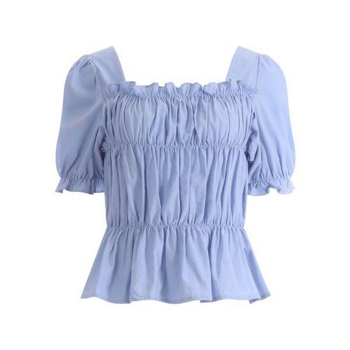 [셀러허브_여성트랜드패션]Rly 스퀘어넥 스모크밴딩 부분프릴 세미크롭 블라우스