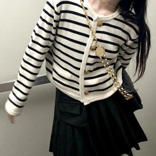 [엄지척]봄 가을 여자 반크롭 스트라이프 가디건 긴팔 티셔츠_19804411_667501