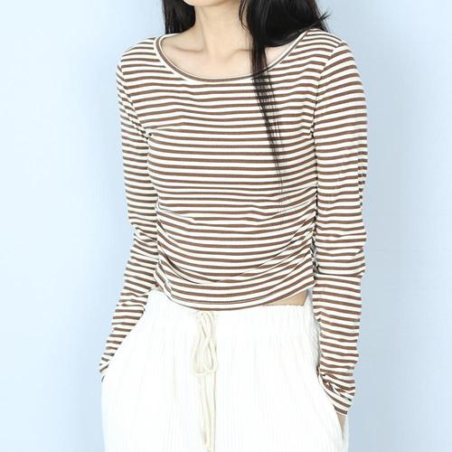 [엄지척]스트라이프 크롭 긴팔 티셔츠 밑단 소매 골지_19682070_667501