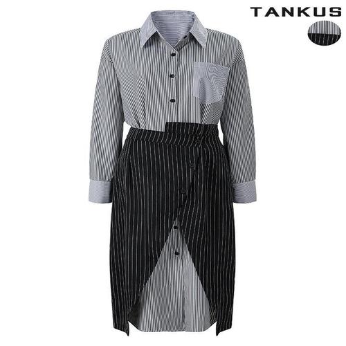 [탱커스]여성 슬릿 스트라이프 셔츠 원피스 셋업
