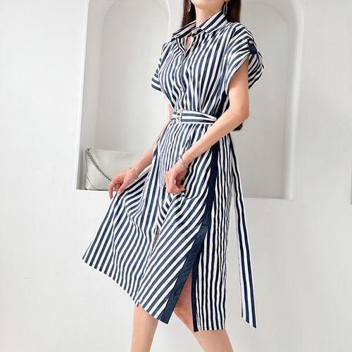 [숲]셔츠형 스트라이프 벨티드 원피스 SC4OP36