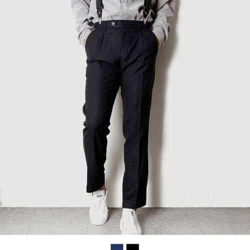 [빌리버스]빌리버스 남성 투턱 슬랙스 스트라이프 와이드 정장 바지 BITP045