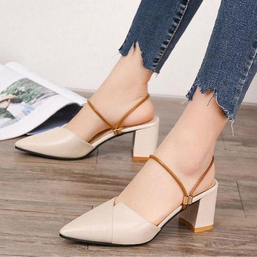 [애슬릿] 여성 스트랩 사무실 뮬 힐 블로퍼 6.3cm