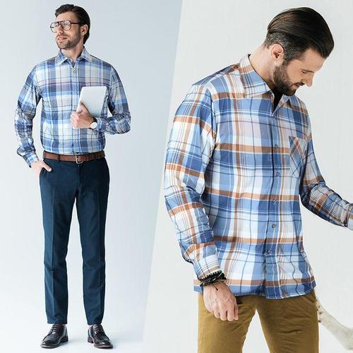 [파라고나]SYM새틴팜 스트레치 체크셔츠 남자 봄 여름 긴팔 린넨남방
