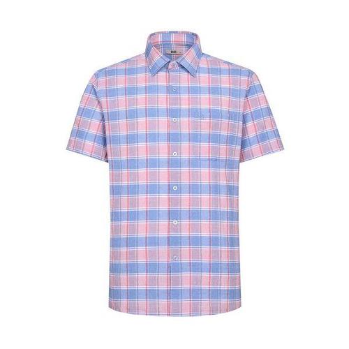 [닥스셔츠]린넨혼방 이지케어 미디움체크 스트레치 반팔셔츠