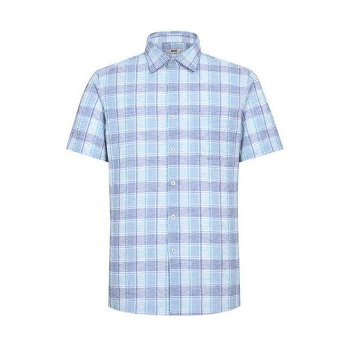 [닥스셔츠]린넨혼방 이지케어 스트레치 스몰체크 캐주얼 반팔셔츠 레귤러핏