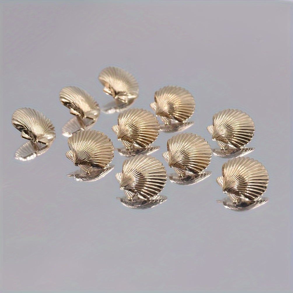 TEMU 10개 패션 골드 컬러 금속 조개 단추 DIY, 스웨터, 가디건, 코트용 - 옷 장식용 조개 모양 단추