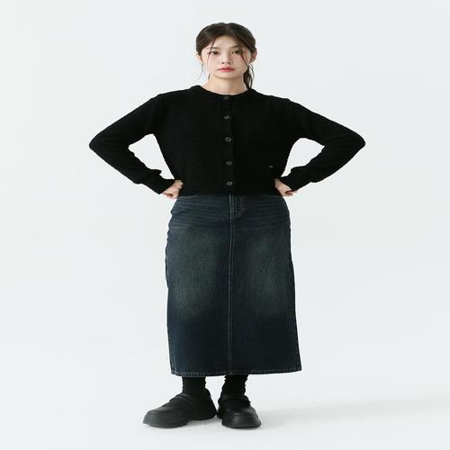 [헤이올리] (44~77) 데님스판 워싱 중청 H라인 뒷트임 스커트 SH1162