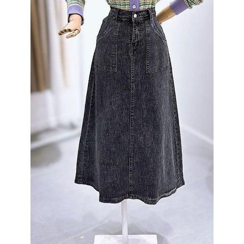 JIEVE 여자 여름 스판 롱 일자 미디 빅사이즈 에이치라인 청치마 데님 스커트 SZ052617