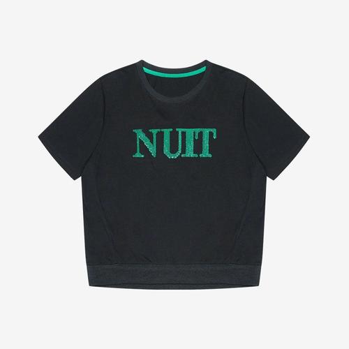 [MAXZA] 스팽글 레터링 라운드넥 반팔 티셔츠