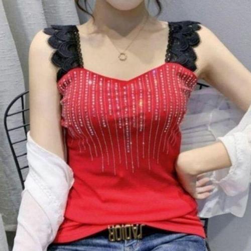 [에이치플러스몰]여름 인기 인기 여자 캐주얼 감성 레이스 스팽글 나시