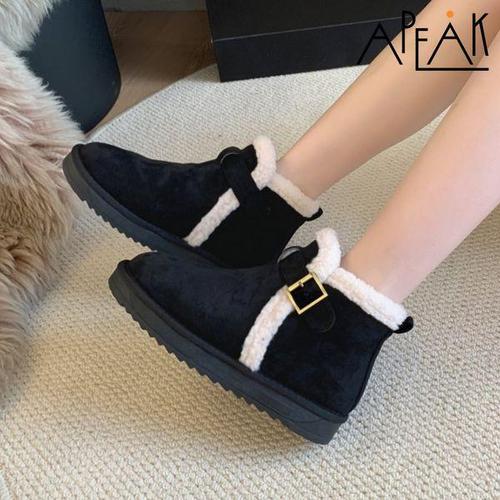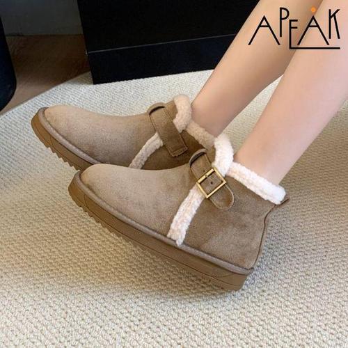 [스포츠용품(기타브랜드)]버클포인트 양털 반부츠 퍼안감 따뜻한 겨울 여성 털부츠 베이지
