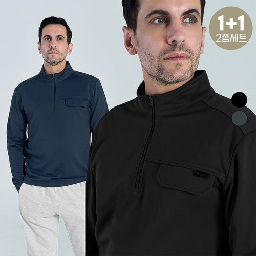 [1+1][시즌오프] 솔리드 하프넥 반집업 스포츠 긴팔 티셔츠 MVT5367