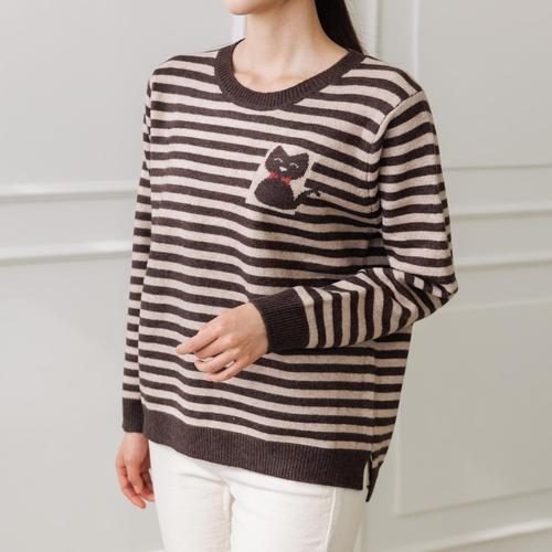 [WPBG]고양이 패치 스프라이프 언발트임 니트_4color