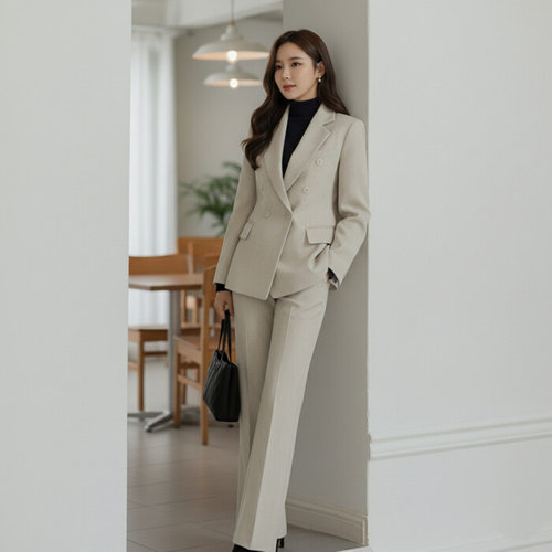 여성정장세트 카키색 정장팬츠 봄가을 긴팔 오피스룩 세트 힛템