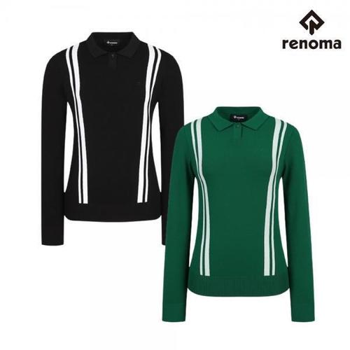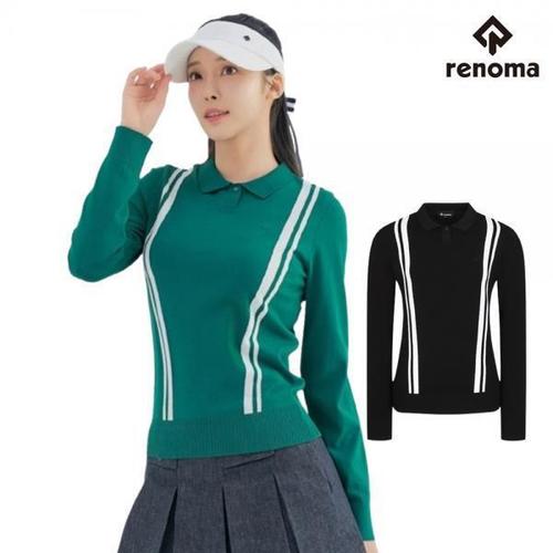 [레노마골프]레노마골프 여성 골프 봄 신축성 슬림 라인 배색 카라 니트 HN-5203 CA3843778