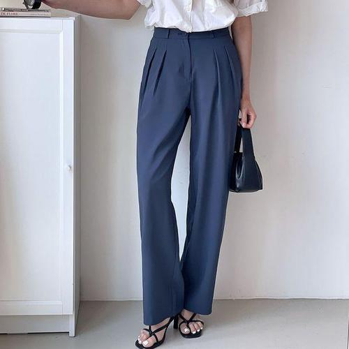 TEMU 여성용 슬림핏 와이드레그 팬츠, 봄/여름 신상 이너웨스트 캐주얼 드레이프 직선바지 - 출퇴근 & 작업복