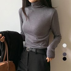아피나르 여성용 레이온 슬림핏 터틀넥 긴팔 티셔츠
