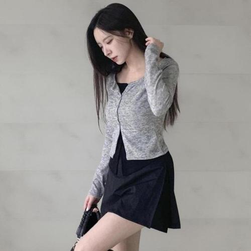 [신상오픈런]여성 심플 배색 단가라 슬림핏 단추 니트 가디건
