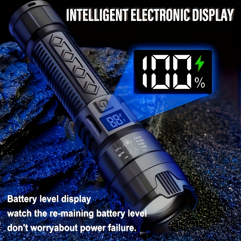 TEMU B B BRIGHT 충전식 LED 손전등은 IP44 등급, 컴팩트한 디자인, 조절 가능한 초점, 배터리 잔량 표시등을 특징으로 합니다. 3가지 조명 옵션을 제공하여 야외 활동, 캠핑, 작업에 적합합니다.