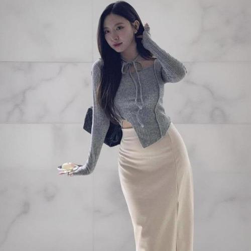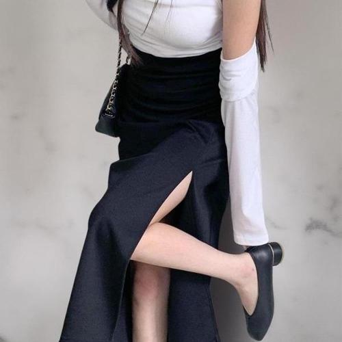 [다잇템]여자 트임 일자 슬릿 쫀쫀스판 컷아웃 롱스커트_3